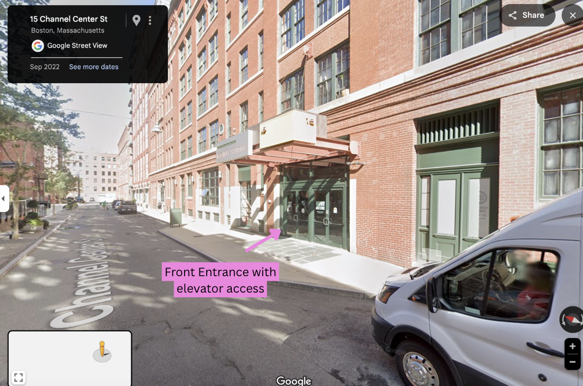 Nota: Necesitará que un miembro del personal lo acompañe para abrir las puertas y ayudar con el ascensor. Si planea asistir a un evento aquí, notifique a nuestro personal con anticipación para que podamos conectarlo con el miembro del personal que lo asistirá.